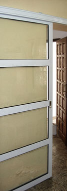 Puerta de Aluminio con divisiones y vidrio laminado 8mm de seguridad.